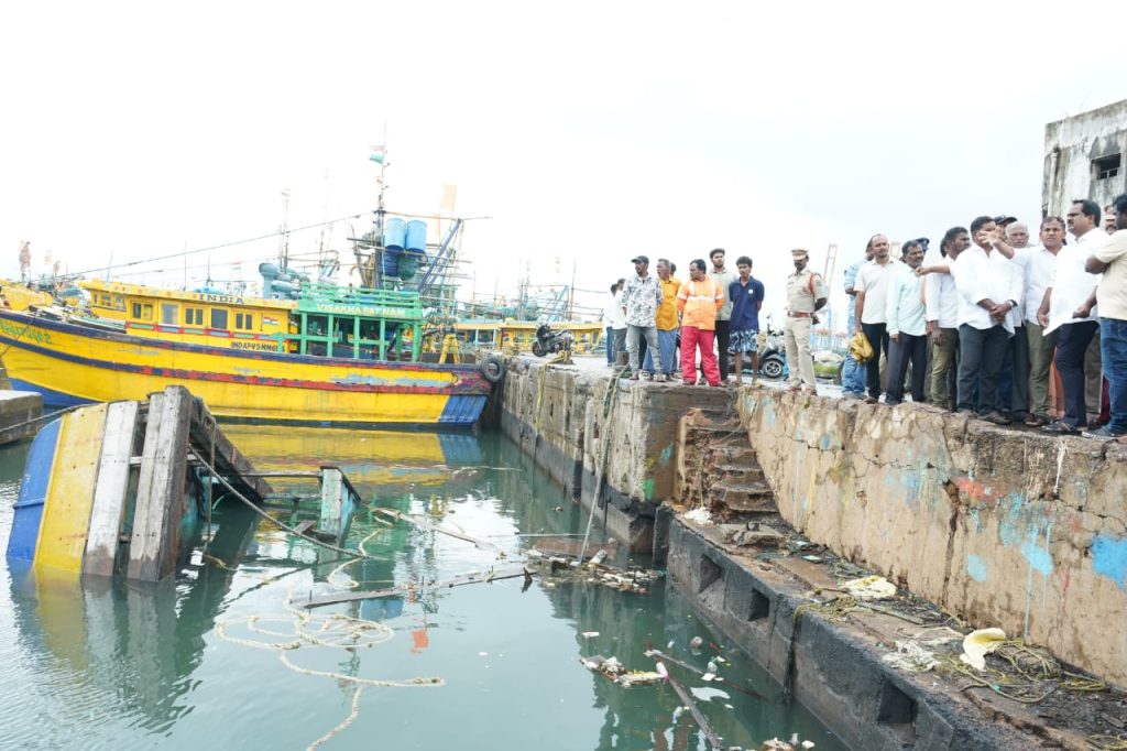 సాక్షి డిజిటల్స్ విశాఖ ప్రతినిధి సంజయ్ విశాఖపట్నం హార్బర్ లో తుఫాను , అలలు తాకిడికి ఒక బోటు మునిగిపోవడం జరిగింది అనుకోకుండా జరిగిన ఘటన విషయాన్ని పోర్ట్ అధికారుల దృష్టికి తీసుకు వెళ్లడం జరిగింది మునిగిపోయిన బోటు విలువ సుమారు 30 లక్షల ఉంటుంది ఫిషరీ డిపార్ట్మెంట్ వారు కొంత, సీఎం రిలీఫ్ ఫండ్ ద్వారా కొంత నష్టపరిహారం రిలీజ్ చేయించి వారిని పూర్తిగా ఆదుకుంటాము ఈ ఒక్క ఘటన మినహా హార్బర్ ఏరియా ప్రశాంతంగా ఉంది దక్షిణ నియోజకవర్గం లోతట్టు ప్రాంతాలు ఎక్కువగా కలిగి ఉండడం వలన నీరు ఎక్కువగా చేరడం వల్ల ప్రజలు కొంత ఇబ్బందులకు గురయ్యారు లోతట్టు ప్రాంతాల్లో ఉండే వారిని పునరావాస కేంద్రాలకు తరలించి భోజనాలు ఏర్పాటు చేయడం జరిగింది రెవెన్యూ, పోలీస్, జీవీఎంసీ యంత్రాంగం గత నాలుగు రోజుల నుండి అదేపనిగా పనిచేస్తున్నారు, వారికి ప్రత్యేక ధన్యవాదాలు పవర్ పోయిన, చెట్లు పడిపోయిన వెంటనేస్పందిస్తున్నారు ,అధికారులు అందరూ ఎలార్ట్ గా ఉన్నారు తుఫాను తీవ్రత తగ్గింది,విశాఖ ప్రశాంతంగా ఉంది ,ఎటువంటి ఇబ్బందులు లేవు మరో రెండు రోజులు వర్షం పడినా వచ్చే ఇబ్బందులు ఎదురుకోవడానికి సిద్ధంగా ఉన్నాము తుఫాను కారణంగా ఫిషింగ్ హార్బర్ సెంట్రల్ డాక్ ప్రాంతంలో నిలిపివుంచిన మేరుగ ధనరాజు గారి బోటు ( ఏపీ వి5 MM90) మునిగిపోయిన నేపథ్యంలో దక్షిణ నియోజకవర్గం ఎమ్మెల్యే వంశీకృష్ణ శ్రీనివాస్ హుటా హుటున సంఘటన స్థలానికి వెళ్ళి పరిశీలించారు. సుమారు 30 లక్షలు మేర నష్టపోయామని సంబంధిత బోటు యజమాని మరియు అసోసియేషన్ ప్రతినిధులు ఎమ్మెల్యే తెలియజేశారు. ఎమ్మెల్యే వంశీకృష్ణ శ్రీనివాస్ స్థానిక అధికారులతో మాట్లాడి బోటు ఓనరుకు న్యాయం చేకూర్చాలని తెలిపారు. ఈ సందర్భంగా ఎమ్మెల్యే వంశీకృష్ణ శ్రీనివాస్ మాట్లాడుతూ స్థానిక ఫిషరీస్ జాయింట్ డైరెక్టర్ లక్ష్మణరావు గారితో పాటు సంబంధిత అధికారులకు ఘటనను వివరించామని త్వరలోనే నష్టపరిహారం అందిటట్లు చర్యలు చేపడతామని తెలియజేశారు. గత మూడు రోజులుగా కూటమి ప్రభుత్వంలో ప్రజలకు ఎలాంటి ఇబ్బందులు లేకుండా నిరంతరం యంత్రాంగం ప్రజలకు అందుబాటులో ఉందని వివరించారు. ఈ సందర్భంగా వారికి ప్రత్యేక ధన్యవాదాలు తెలియజేశారు. రానున్న రోజుల్లో ప్రజలకు ఎటువంటి ఇబ్బందులు కలగకుండా ముందుగానే చర్యలు చేపడుతున్న విషయాన్ని గుర్తు చేశారు .కార్యక్రమంలో బోటు అసోసియేషన్ పెద్దలు, స్థానిక మత్స్యకారులు, టిడిపి, బిజెపి, జనసేన నేతలు మరియు ప్రభుత్వ అధికారులు పాల్గొన్నారు.