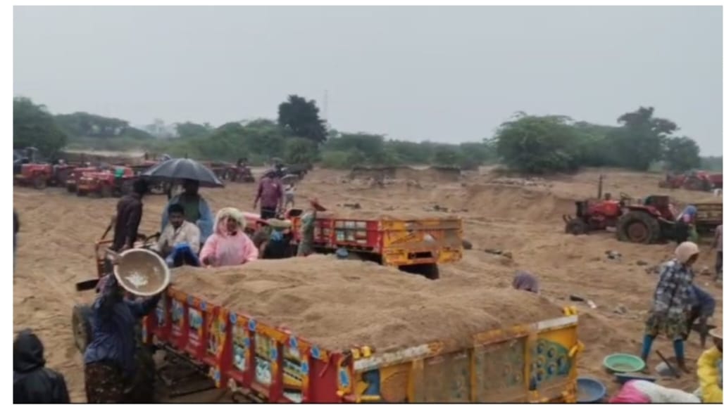 సాక్షి డిజిటల్ న్యూస్ అక్టోబర్ 30 తిరుమలగిరి మండలం, తిరుమలగిరి మున్సిపాలిటీ పరిధిలోని 9వ వార్డు నందాపురం బిక్కేరు వాగు నుండి “మన ఇసుక మన వాహనం” పథకం కింద ట్రాక్టర్లతో ఇసుక రవాణా చేయడం జరుగుతుంది. అధికారుల ఆదేశాలు పట్టించుకోని ట్రాక్టర్ యజమానులు మాకు మేమే అన్నట్లుగా మాకు ఎవరు అడ్డు అన్నట్లుగా ఇసుక రవాణా చేస్తున్న ట్రాక్టర్ యజమానులు భారి నుంచి అతి భారీ వర్షాలు కుడుస్తున్న పట్టించుకోకుండా ప్రజల ఆరోగ్యాలతో చెలగాటమాడుతున్న ట్రాక్టర్ యజమానులు, అధికారులు తక్షణమే తగిన చర్యలు తీసుకోవాలని ప్రజలు కోరుతున్నారు.ప్రస్తుతం రాష్ట్రంలోని పలు జిల్లాల్లో భారీ నుంచి అతి భారీ వర్షాలు కురుస్తున్నాయి. ముఖ్యంగా దక్షిణ తెలంగాణ జిల్లాలకు వాతావరణ శాఖ రెడ్ అలర్ట్ జారీ చేసింది. రాబోయే 8-12 గంటల్లో నల్గొండ, సూర్యాపేట, నాగర్కర్నూల్, వనపర్తి, మహబూబ్నగర్, రంగారెడ్డి, యాదాద్రి – భువనగిరి, సంగారెడ్డి, వికారాబాద్ జిల్లాల్లో భారీ వర్షాలు కురిసే అవకాశం ఉందని వాతావరణశాఖ తెలిపింది. కొన్ని ప్రాంతాలలో 100-150 మిల్లీమీటర్ల వరకు వరద వర్షాలు నమోదయ్యే ప్రమాదం ఉందన్నారు. ఇప్పటికే నాగర్కర్నూల్లోని అమ్రాబాద్లో 155 మిల్లీమీటర్ల భారీ వర్షపాతం నమోదైంది. రాబోయే గంటల్లో ఈ జిల్లాలో 200 మిల్లీమీటర్ల వర్షం కూడా కురిసే అవకాశం ఉందని హెచ్చరించారు.