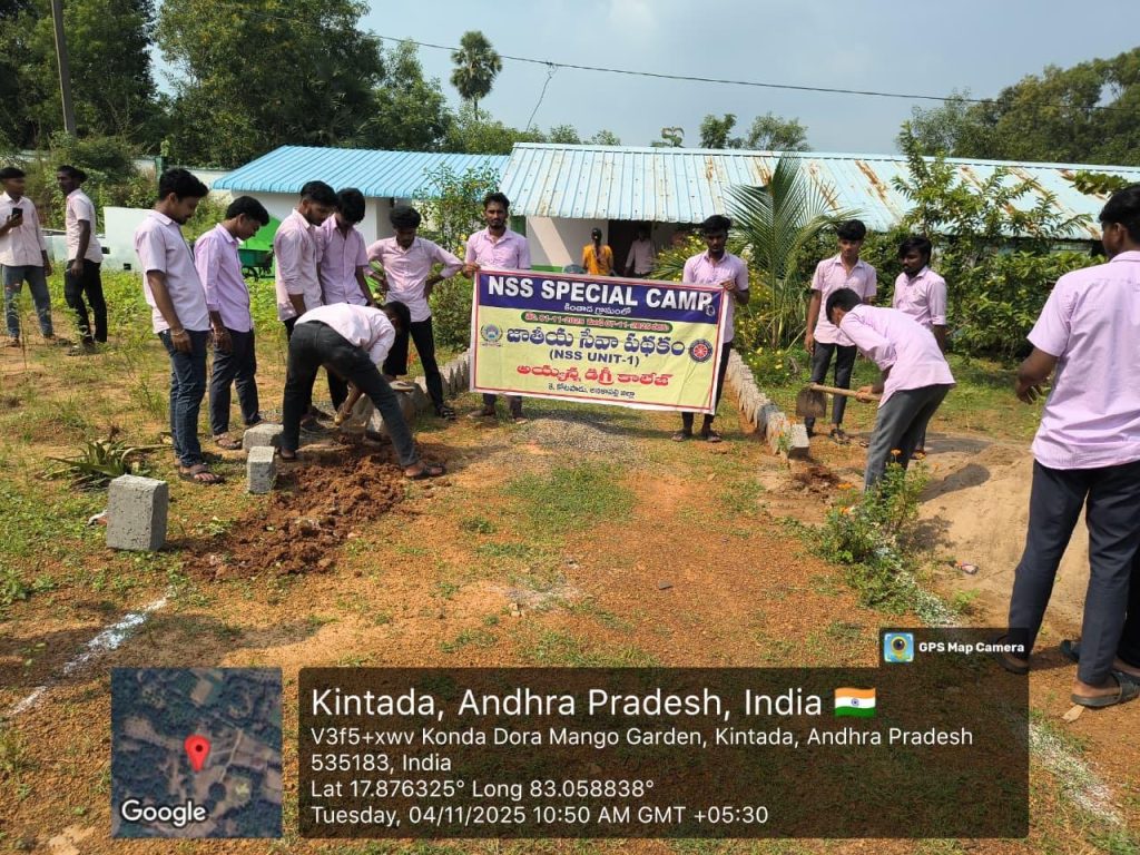 సాక్షి డిజిటల్ న్యూస్ రిపోర్టర్ వేగి రామారావు అనకాపల్లి నవంబర్ 05: కె.కోటపాడు అయ్యన్న జూనియర్, డిగ్రీ కళాశాలలు జోగన్నపాలెం, కింతాడ గ్రామాల్లో ప్రారంభించిన జాతీయ సేవా పధకం (ఎన్.ఎస్.ఎస్.) ప్రత్యేక శిబిరం నాలుగవ రోజయిన మంగళవారం ప్రభుత్వం ప్రతిష్టా త్మకంగా నిర్వహిస్తోన్న చెత్త నుండి సంపద తయారీ కేంద్రంపై ప్రత్యేక దృష్టిసారించారు.ఎన్.ఎస్.ఎస్. పీఓ సీముసురు రమణ ఆధ్వర్యంలో కింతాడ సమీపంలో గల చెత్త నుండి సంపద తయారీ కేంద్రం ప్రాంగణంలో స్వచ్ఛ భారత్ కార్యక్రమంలో వాలంటీర్స్ తుప్పలను తొలగించారు. కాయగూరలు, పండ్లు, పూలమొక్కల వద్ద శ్రమదానంతో గార్డెనింగ్ చేశారు. గేటు నుంచి షెడ్ వరకూ సిమెంట్ ఇటుకలతో తోవను నిర్మించారు.ఇదిలా ఉండగా జోగన్నపాలెంలో జూనియర్ కాలేజీ ఎన్.ఎస్.ఎస్. పీఓ గాడి అప్పారావు ఆధ్వర్యంలో జూనియర్ కాలేజీ వాలంటీర్లు ఉచిత పశు వైద్య శిబిరం ఏర్పాటు చేశారు.ఈ శిబిరాన్ని తెలుగు దేశం పార్టీ మండల ప్రధాన కార్యదర్శి కన్నూరు సూర్య నారాయణ ప్రారంభం చేశారు. వెటర్నరీ అసిస్టెంట్ శ్రీనివాసరావు పశువులకు వైద్యం చేశారు. వాలంటీర్లు పశువులకు వైద్య సేవలు అందించారు. ఈ సేవా కార్యక్రమంలలో అయ్యన్న జూనియర్,అయ్యన్న డిగ్రీ కాలేజీల అధ్యాపకులు సుశీల, దుర్గాదేవి, కళ్యాణి, దీప్తి తదితరులు పాల్గొన్నారు.