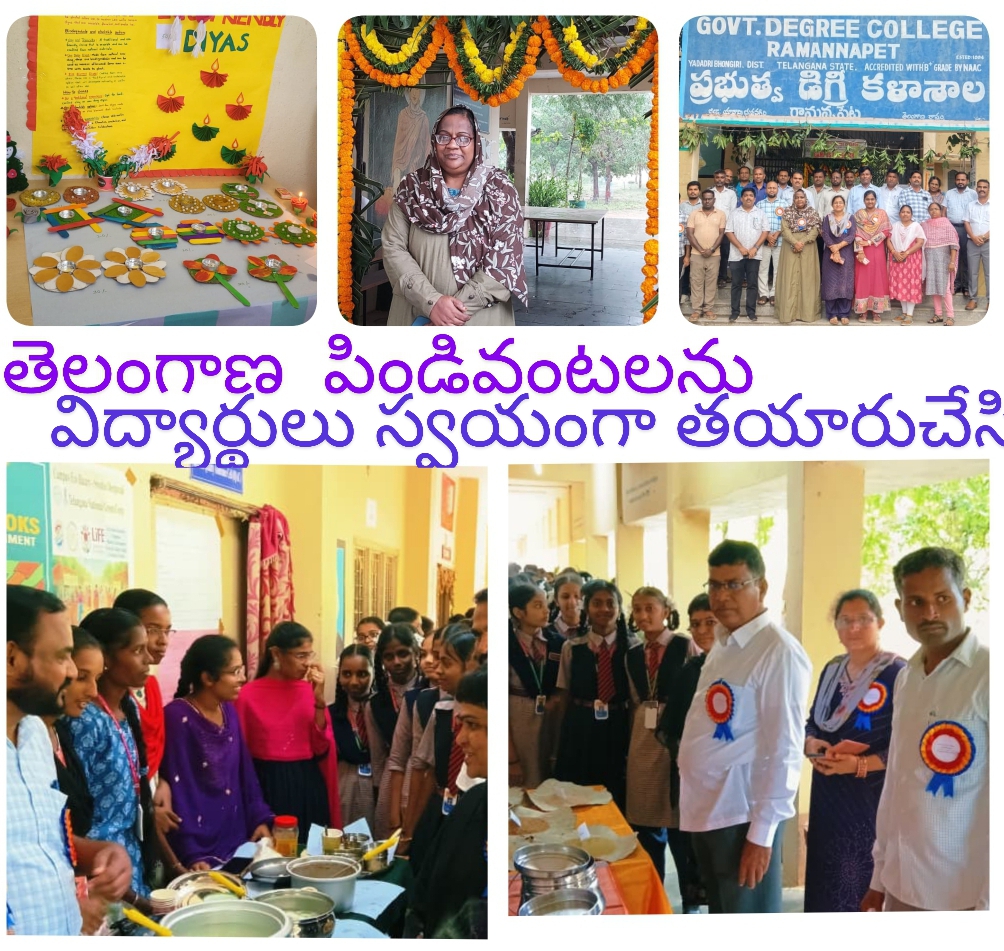 సాక్షి డిజిటల్ న్యూస్,నవంబర్ 04,రామన్నపేట మండలం రిపోర్టర్,శ్యామల నాగరాజు వంశరాజ్: యాదాద్రి భువనగిరి జిల్లా రామన్నపేట మండలం స్థానిక ప్రభుత్వ డిగ్రీ కళాశాలలో పర్యావరణహిత ఎకో బజారును నిర్వహించడం జరిగింది. ఈ సందర్భంగా కళాశాల ప్రధానాచార్యులు రాహత్ ఖానం మాట్లాడుతూ విద్యార్థుల్లో వ్యాపార నైపుణ్యాన్ని అభివృద్ధి చేయడం, పర్యావరణ పరిరక్షణ కలిగింపజేయాలన్న సంకల్పాన్ని పొందింప చేయడం ప్రధాన ఉద్దేశ్యాలుగా ఈ ఎకో బజార్ నిర్వహించడం జరిగిందని అన్నారు. విద్యార్థులచే వివిధ వస్తువులు, తినుబండారాలు ప్లాస్టిక్ రహిత పదార్థాలతో కూడిన 16 స్టాళ్ళను ఏర్పాటు చేసి నిర్వహించడం జరిగిందని,తెలంగాణ పిండివంటలను విద్యార్థులే స్వయంగా తయారుచేసి ఈ స్టాళ్ళలో అమ్మడం జరిగిందని తెలియజేశారు. ఈ కార్యక్రమాన్ని స్థానిక పాఠశాల,జూనియర్ కళాశాల విద్యార్థులు,స్థానిక ప్రజలు సందర్శించడం జరిగింది. ఈ కార్యక్రమానికి విశిష్ట అతిథిగా విచ్చేసిన స్థానిక ప్రభుత్వ జూనియర్ కళాశాల ప్రధానాచార్యులు సి.జగదీష్ మాట్లాడుతూ ఇలాంటి కార్యక్రమాలను ఏర్పాటు చేయడం వల్ల విద్యార్థులు చదువుతోపాటు మంచి నైపుణ్యాన్ని పెంపొందించుకొని ఉపాధిని పొందే అవకాశం ఉంటుందని అన్నారు.ఈ కార్యక్రమంలో వైస్ ప్రిన్సిపల్ డాక్టర్ పి వెంకటేశ్వరరావు,ఐక్య ఏసి కోఆర్డినేటర్ డాక్టర్ లక్ష్మీ నీలిమ,అకడమిక్ కోఆర్డినేటర్ డాక్టర్ జె చిన్న బాబు,పాలనాధికారి జి కరుణాకర్,అధ్యాపకులు డాక్టర్ రత్న మంజుల, డాక్టర్ జి సునీత, డాక్టర్ తండు కృష్ణ కౌండిన్య, డాక్టర్ సిహెచ్ వెంకట్, డాక్టర్ డి కిషన్,డాక్టర్ ఎం బ్రహ్మం, డాక్టర్ ఎం రవీందర్ రావు, డాక్టర్ ఆర్ శ్రీను, టి శ్రీనివాస్, బాలరాజు, రాధిక, విద్యార్థులు తదితరులు పాల్గొన్నారు.