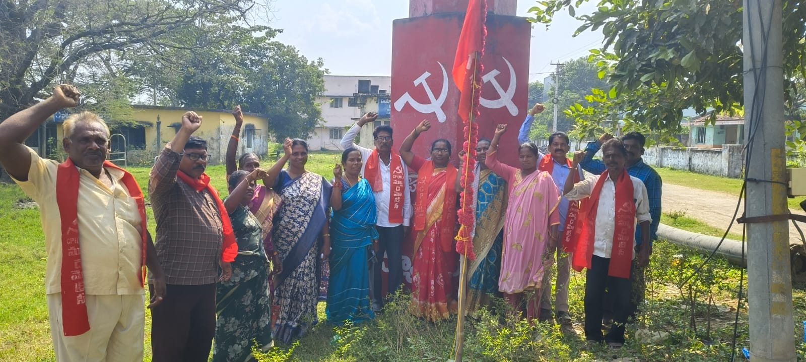 సాక్షి డిజిటల్ న్యూస్ పినపాక ప్రతినిధి నవంబర్7 సిపిఐ (ఎంఎల్) న్యూ డెమోక్రసీ రాష్ట్ర కమిటీ పిలుపులో భాగంగా శుక్రవారం భద్రాద్రి కొత్తగూడెం జిల్లా అశ్వాపురం మండల కేంద్రంలో అమరవీరుల సంస్మరణ సభ కామ్రేడ్ పెదగొని ఆదిలక్ష్మి అధ్యక్షతన జరిగింది, డివిజన్ నాయకులు పావురాల లాలయ్య జెండాను ఎగరవేశారు, అనంతరం సిపిఐ ఎంఎల్ సీనియర్ నాయకులు కామ్రేడ్ జగ్గన్న, సిపిఐ ఎంఎల్ న్యూడెమోక్రసీ జిల్లా నాయకులు ముసలి సతీష్ మాట్లాడుతూ ప్రతిఘటన పోరాట తొలి అమరులు బత్తుల వెంకటేశ్వరరావు, సూర్యనారాయణ, బిజ్జా వెంకన్న ల(గొందిగూడెం అమరవీరులు ) స్తూపం దగ్గర ఈ సభ జరిగినది. చండ్ర పుల్లారెడ్డి గారి నాయకత్వన ఏర్పడిన తొలి దళంఫై పోలీసులు తప్పుడు సమాచారంతో ఈ దళంపై ప్రజలను ఉసిగొలిపి, దాడి చేయించి పట్టుకున్నారు. ఆ తర్వాత పోలీసులు చిత్రహింసలు పెట్టి ఈ కామ్రేడ్స్ ను బూటకపుఎన్కౌంటర్లో కాల్చి చంపారు అని అన్నారు,ఈ తొలి అమరవీరులను స్మరిస్తూ పగిడేరు గ్రామస్తుడైన కామ్రేడ్ జగ్గన్న సుదీర్ఘకాలం కామ్రేడ్ దళం లో నాయకుడిగా పని చేశాడు అని అన్నారు, ఆనాటి త్యాగాల గురించి అమరవీరుల చరిత్ర గురించి వివరించాడు, జగ్గన్న సహజరి కామ్రేడ్ లక్ష్మక్క, ఇస్తారి ఎన్కౌంటర్ హత్యకు గురైనారు అని ఆయన అన్నారు, మొండికుంట జాన్ రెడ్డి రంగవల్లితో ఎన్కౌంటర్ హత్యకు గురి అయ్యాడని అమరవీరుల త్యాగాలను నేటి తరానికి తెలియజేశారు, నేడు రైతాంగం ఎదుర్కొంటున్న సమస్యలను పరిష్కరించాలని ప్రభుత్వాన్ని డిమాండ్ చేశారు, కార్పొరేట్లకు వ్యతిరేకంగా బలమైన ప్రజా ఉద్యమాలను నిర్మించాల్సిన అవసరం ఉందని నాయకులు తెలియజేశారు. ఈ కార్యక్రమంలో ఏఐకేఎంఎస్ జిల్లా నాయకులు మెస్ గోపాల్, బత్తిని సత్యం, పిఓడబ్ల్యూ డివిజన్ అధ్యక్షురాలు కొడిమ రాధ,న్యూడెమోక్రసీ డివిజన్ నాయకులు YS రెడ్డి తెల్లoవెంకటమ్మ,. కనతాల వెంకన్న తదితరులు పాల్గొన్నారు.