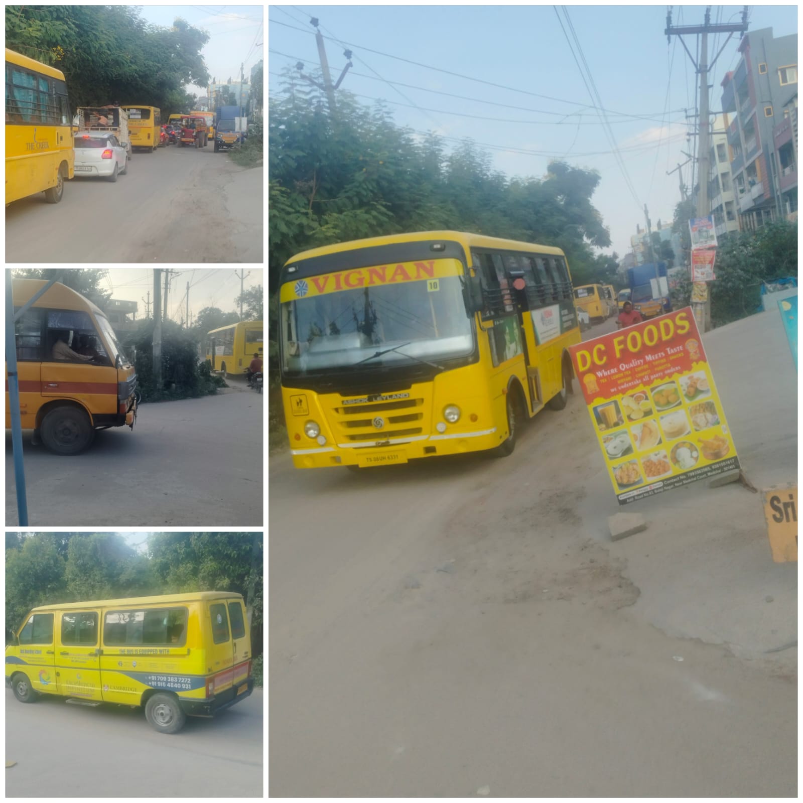 ప్రైవేటు స్కూల్లో బస్సులతో నిత్యం ఉదయము సాయంత్రం రోడ్డుపై కి వెళ్లడం కష్టంగా మారింది