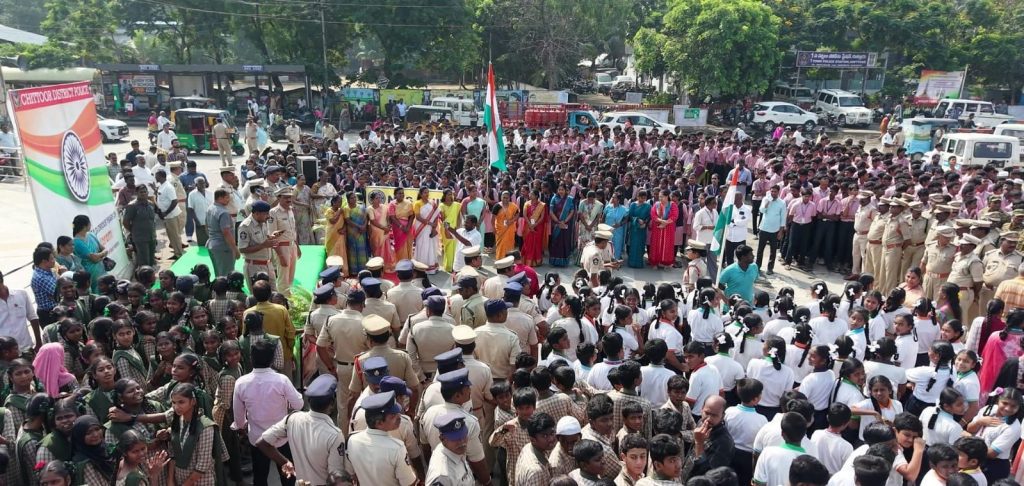 1000 మంది విద్యార్థులు, పోలీసులు, ప్రజలతో జాతీయ గీతం ఆలాపన గాంధీ కూడలి వద్ద నిర్వహించిన ఈ కార్యక్రమంలో విద్యార్థులు త్రివర్ణ పతాకాలు ఊపుతూ దేశభక్తి నినాదాలతో వేదికను మార్మోగించారు. జిల్లా పోలీసు బృందం సమన్వయంతో నిర్వహించిన ఈ కార్యక్రమం జిల్లా ప్రజల్లో గర్వభావనను రేకెత్తించింది.