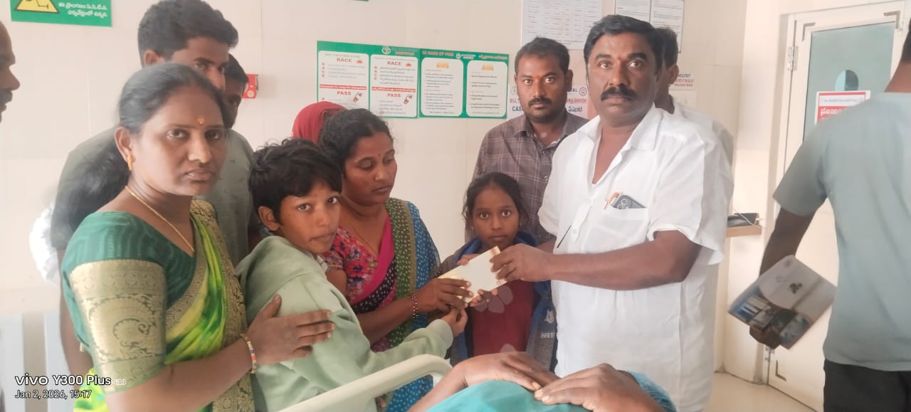 సాక్షి డిజిటల్ న్యూస్ 3 డిసెంబర్ : – వలిగొండ రిపోర్టర్ కుమారస్వామి, ఇటీవల లారీ ప్రమాదంలో కాలు విరిగి దిల్ సుక్ నగర్ లోని సాయి సంజీవిని హాస్పిటల్ లో చికిత్స పొందుతున్న కొండాపురం గ్రామానికి చెందిన మర్రి బిక్షపతిని శుక్రవారం మోట కొండూరు కాంగ్రెస్ పార్టీ సర్పంచ్ల ఫోరం అధ్యక్షులు కొండాపురం సర్పంచ్ కొప్పుల వెంకట్ రెడ్డి పరామర్శించి అనంతరం వారి కుటుంబ సభ్యులకు 10,000 రూపాయలు ఆర్థిక సాయం అందజేసి త్వరలో కోలుకునే విధంగా చికిత్స అందించాలని వైద్య సిబ్బందిని కోరారు