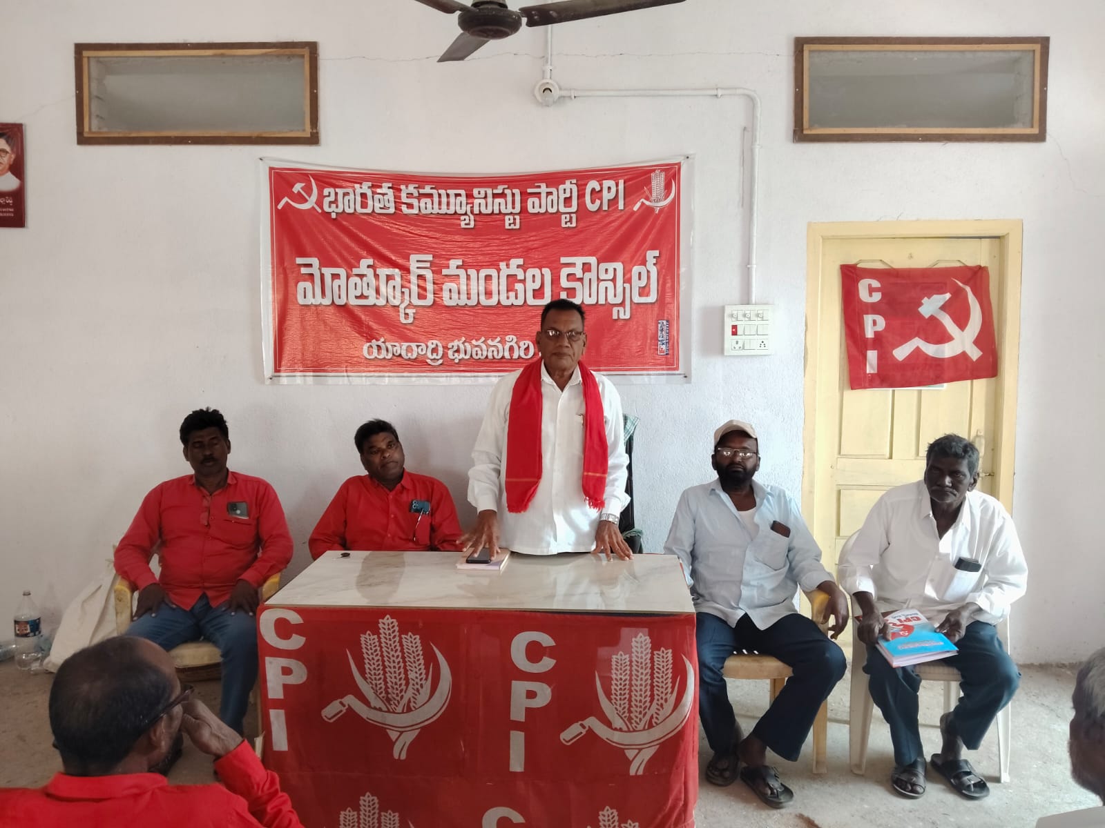 సాక్షి డిజిటల్ న్యూస్ జనవరి 3 యాదాద్రి భువనగిరి జిల్లా మోత్కూరు మండలం రిపోర్టర్ ముషం శ్రీనివాస్, మోత్కూరు అడ్డగూడూరు మండలాల కౌన్సిల్ సమావేశం చాపల అంజయ్యఅధ్యక్షతన జరిగినది ఈ సమావేశానికి ముఖ్య అతిథులుగా సిపిఐ పార్టీ జిల్లా కార్యదర్శి యానాల దామోదర్ రెడ్డి జిల్లా పార్టీ సహయకార దర్శి చేడె చంద్రయ్య మాట్లాడుతూ భారత కమ్యూనిస్టు పార్టీ సిపిఐ 1925 డిసెంబర్ 26న ఉత్తరప్రదేశ్ రాష్ట్రంలోని కాన్పూర్ పట్టణంలో సిపిఐ పార్టీగా ఆవిర్భవించింది. ఆనాటి నుండి స్వాతంత్ర పోరాటం అలాగే తెలంగాణ సాయుధ పోరాటం నడిపిన చరిత్ర భారత కమ్యూనిస్టు పార్టీని ఈ దేశంలో బడుగు బలహీన వర్గాల సమస్యలపై నిరంతరం పోరాటం చేస్తున్నదని ఈ రెండు మండలాల ప్రజా సమస్యలపై పార్టీ శ్రేణులు నిరంతరం పోరాటం చేయాలని అలాగే ఈ నెల 18వ తారీకు రోజు ఖమ్మంలో జరుగు తున్న లక్షలాదిమంది బహిరంగ సభకు మేధావులు విద్యావేత్తలు యువతీ యువకులు సానుభూతిపరులు అందరూ పాల్గొని బహిరంగ సభను విజయవంతం చేయాలని పార్టీ శ్రేణులకు పిలుపునిచ్చారు. ఈ కార్యక్రమంలో మోత్కూరు అడ్డగూడూరు మండలంలో కార్యదర్శులు అన్నపు వెంకట్ రేకుల శ్రీనివాస్ సహాయ కార్యదర్శిలు పులకరం మల్లేష్ కందుకూరి వెంకన్న మొగుళ్ల శేఖర్ రెడ్డి బుష్పక నరసింహమాధవి కొము రాములు పోచం కన్నయ్య చెడేనగేష్ బొనిగ సుదర్శన్ రెడ్డి ఎండి అబ్బ సాయిలు దొండ ఎల్లయ్య గొలుసుల యాదగిరి వెంకటేశ్వర్లు చెడే సుందరయ్య యాట రామచంద్రు బోడ సోమ నరసయ్య తదితరులు పాల్గొన్నారు.