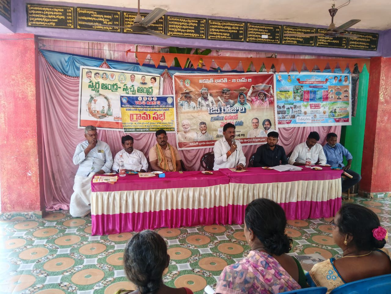 సాక్షి డిజిటల్ న్యూస్ రిపోర్టర్ వేగి రామారావు జనవరి 6. చోడవరం , రాయపురాజుపేట గ్రామంలో గురువారం గ్రామ సభ నిర్వహించారు. ఈ సందర్భంగా కేంద్ర ప్రభుత్వం ప్రతిష్టాత్మకంగా చేపట్టిన వికసిత భారత్ జీ–రాం జీ కార్యక్రమం గురించి ప్రజలకు విస్తృతంగా అవగాహన కల్పించారు. కార్యక్రమం లక్ష్యాలు, ప్రయోజనాలు, గ్రామాభివృద్ధిలో ప్రజల భాగస్వామ్యం తదితర అంశాలను సభలో వివరించారు. ఈ గ్రామ సభను గ్రామ సర్పంచ్ రామునాయుడు ఆధ్వర్యంలో నిర్వహించారు. కార్యక్రమంలో ఏడీఈ సురేష్ కుమార్, ఏఈ ఉదయ్ కుమార్, గ్రామ కార్యదర్శి మోహన్, ఉప సర్పంచ్ రామూర్తి పాల్గొని మాట్లాడారు. వికసిత భారత్ లక్ష్య సాధనలో ప్రతి ఒక్కరూ భాగస్వాములుగా నిలవాలని వారు పిలుపునిచ్చారు.ఈ సభకు గ్రామస్థులు పెద్ద సంఖ్యలో హాజరై కార్యక్రమంపై ఆసక్తి కనబరిచారు.