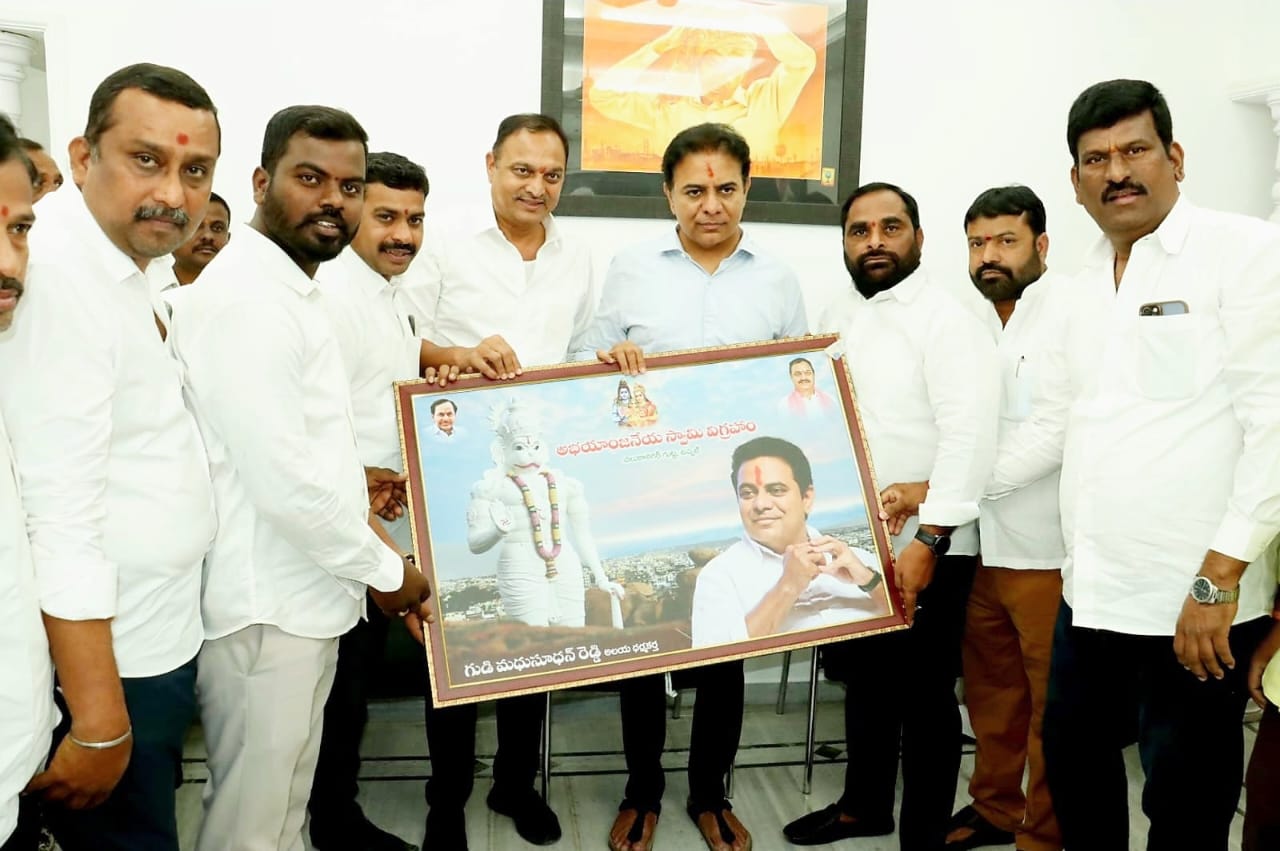 సాక్షి డిజిటల్ న్యూస్ జనవరి 09/2026, మేడ్చల్ మల్కాజిగిరి రిపోర్టర్ చంద్రశేఖర్, గుడి మధుసూదన్ రెడ్డి ఆధ్వర్యంలో బిఆర్ఎస్ పార్టీ వర్కింగ్ ప్రెసిడెంట్ కల్వకుంట్ల తారక రామారావు (కేటీఆర్) కి ఉప్పల్ శాసనసభ్యులు బండారు లక్ష్మారెడ్డి చేతుల మీదుగా అభయాంజనేయ స్వామి చిత్రపటాన్ని కేటీఆర్ కి ఇచ్చి నూతన సంవత్సర శుభాకాంక్షలు తెలియజేశారు ఉప్పల్ నియోజకవర్గంలోని అభయాంజనేయ స్వామి విగ్రహం చాలా అద్భుతంగా ఉందని, భక్తిభావం ఉట్టిపడేలా ఉందని కేటీఆర్ ఈ సందర్భంగా ప్రశంసించారు. త్వరలోనే ఎమ్మెల్యే బండారు లక్ష్మారెడ్డి తో కలిసి చిలకనగర్ గుట్టపై కొలువై ఉన్న అభయాంజనేయ స్వామి వారిని స్వయంగా దర్శించుకుంటానని కేటీఆర్ మాట ఇచ్చారు. ఈ కార్యక్రమంలో ఈరెల్లి రవీందర్ రెడ్డి, కొంపల్లి రాజ్ కుమార్, శనిగరం తిరుమలేష్, ఫోటోల రాజు, అధిక సంఖ్యలో బిఆర్ఎస్ కార్యకర్తలు పాల్గొన్నారు.