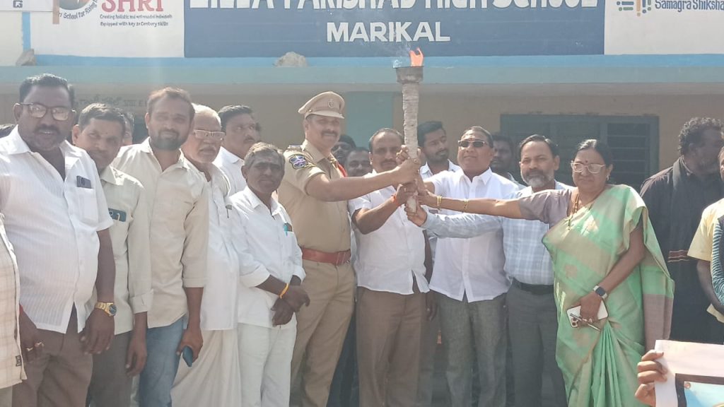 సాక్షి డిజిటల్ న్యూస్, మరికల్,జనవరి o9, 2026,( గాజుల ఇమామ్ ), మరికల్ మండల కేంద్రంలోని జిల్లా పరిషత్ ఉన్నత పాఠశాల విద్యార్థుల ఆధ్వర్యంలో గురువారం సీఎం కప్పు క్రీడల ర్యాలీ కార్యక్రమాన్ని మరికల్ పట్టణంలోని వివిధ వార్డులలో నిర్వహించారు. ఈ ర్యాలీ కార్యక్రమంలో మరికల్ మండల ఎంఈఓ మహమ్మద్ కరిముల్లా, నారాయణపేట జిల్లా కాంగ్రెస్ పార్టీ నాయకులు ఎస్. సూర్య మోహన్ రెడ్డి, మరికల్ మండల కాంగ్రెస్ పార్టీ అధ్యక్షులు వీరన్న, మరికల్ ఎస్సై రాములు, మరికల్ గ్రామ సర్పంచ్ గుప చెన్నయ్య, ఉప సర్పంచ్ కటికే కాజా, పాఠశాల ఉపాధ్యాయులు, గ్రామ నాయకులు మరికల్ గ్రామ అధ్యక్షులు హరీష్ కుమార్, రామకృష్ణారెడ్డి, ఎల్. రాములు,నాగరాజు, గోవర్ధన్, బొంత మొగులయ్య, పెంట మీద రఘు,మరికల్ గ్రామంలోని వివిధ వార్డు సభ్యులు సభ్యులు, పాఠశాలల విద్యార్థులు తదితరులు పాల్గొన్నారు.