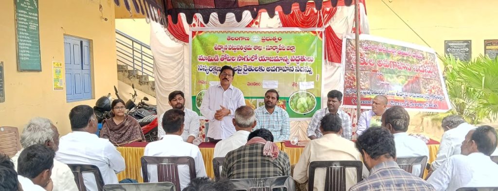 సాక్షి డిజిటల్ న్యూస్, జనవరి 13 2026, అనంతగిరి మండల రిపోర్టర్ గరిడేపల్లి రమేష్, మామిడి తోటలను సాగు చేసే రైతులు సరైన యాజమాన్య పద్ధతులు పాటించినట్లయితే అధిక దిగుబడులు సాధించవచ్చు అని జిల్లా ఉద్యాన పట్టు పరిశ్రమ అధికారి తీగల నాగయ్య అన్నారు. సోమవారం అనంతగిరి మండలం గొండ్రి యాలా గ్రామంలోని ప్రాథమిక వ్యవసాయ సహకార సంఘం లో మామిడి తోటల సాగు యాజమాన్య పద్ధతులు -సస్యరక్షణ చర్యలపై రైతుల అవగాహన సదస్సు ఏర్పాటు చేశారు. ఈ సందర్భంగా ఆయన మాట్లాడుతూ మామిడి తోటలు సాగు చేసే రైతులు సమయానుకూలంగా ఎరువులు పురుగుమందులు పిచికారి చేసి చీడ పిడల భారీ నుండి తోటలను రక్షించుకోవాలన్నారు. ఉద్యాన శాఖ అధికారుల, శాస్త్రవేత్త సూచనలు సలహాలు పాటిస్తూ సరైన సమయంలో సరైన మొత్తాదులో రసాయనిక ఎరువులు పురుగుమందులను వాడాలని సూచించారు. కే వి కే గడ్డిపల్లి ఉద్యాన శాస్త్రవేత సి హెచ్ నరేష్ గౌడ్ మాట్లాడుతూ ప్రస్తుత వాతావరణ పరిస్థితులు మామిడిలో తేనెమంచు పురుగు మరియు బూడిద తెగులు ఆశించుతుందని నివారణకు, ఎకరాకి 15 పసుపు రంగు జిగురు అట్టలు అమర్చుకోవాలని ,పూమొగ్గ దశలో ఒకసారి ఇమిడాక్లోప్రిడ్ – 0.3 మి.లీ. + అజాడిరిక్టిన్ 1500 పి పి ఎం. 2.5 ఎం ఎల్ + హెక్సాకోనజోల్ -2 మి.లీ. లీటర్ నీటికి కలిపి పిచికారీ చేసుకోవాలన్నారు. మామిడిలో పూత బాగా రావడానికి మోనో పొటసియం పోస్పేట్ (00-52-34) – 5 గ్రా. + పార్ములా నెం. 4 – 2గ్రా + ప్లానోఫిక్స్ @ 0.1మి.లీ. లీటర్ నీటికి కలిపి పిచికారీ చేసుకోవాలని సూచించారు.
