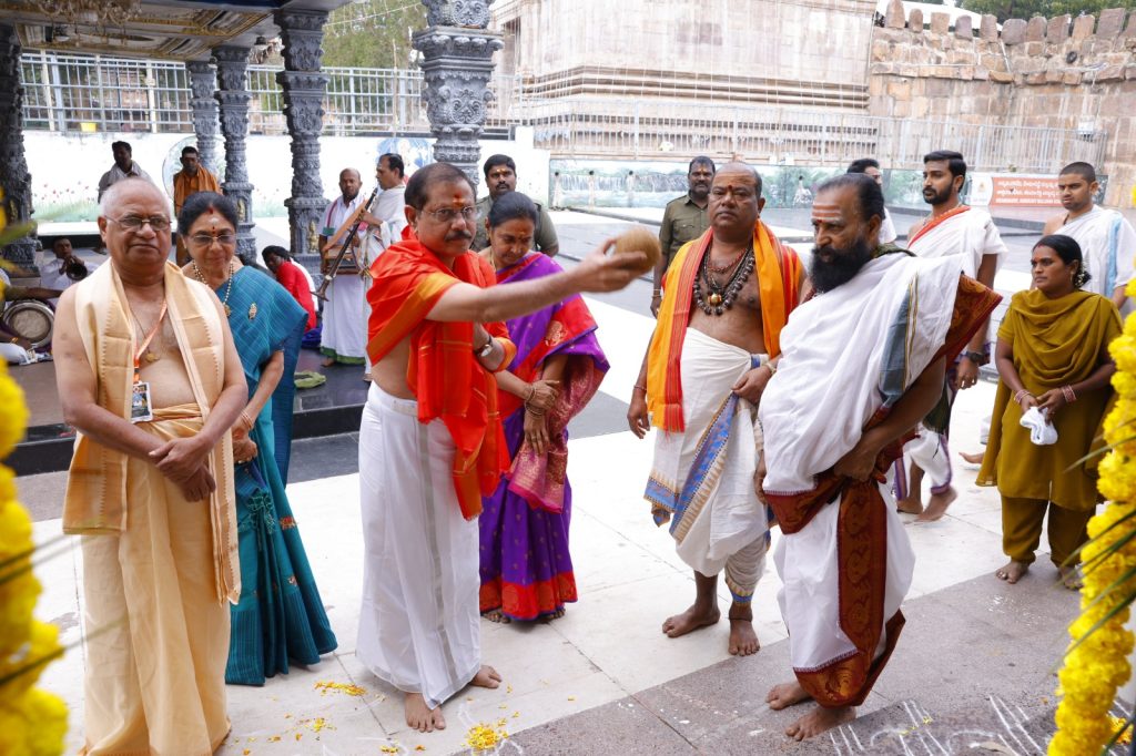 *యాగశాల ప్రవేశంతో ఘనంగా ప్రారంభమైన ఈ బ్రహ్మోత్సవాలు *ఈ కార్యక్రమంలో కుటుంబ సమేతంగా పాల్గొన్న ఈవో శ్రీనివాసరావు,బోర్డు మెంబర్లు,ప్రధాన అర్చకులు వేద పండితులు.