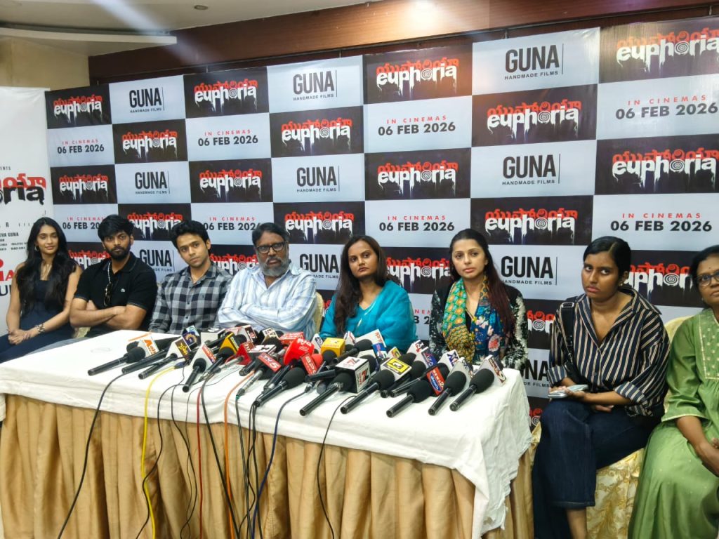 సాక్షి డిజిటల్స్ విశాఖ ప్రతినిధి సంజయ్, విశాఖపట్నం : జనవరి 26, ‘యుఫోరియా’తో ప్రేక్షకులను పలకరించేందుకు సిద్ధమయ్యారు దర్శకుడు గుణశేఖర్. ఆయన దర్శకత్వంలో భూమిక, సారా అర్జున్, గౌతమ్ వాసుదేవ్ మేనన్ ప్రధాన పాత్రల్లో నటిస్తోన్న చిత్రమిది . ఫిబ్రవరి 6న ప్రేక్షకుల ముందుకురానుంది. ఈ నేపథ్యంలో విశాఖపట్నం లోని ఒక హోటల్లో మీడియా సమావేశం నిర్వహించారు చిత్ర యూనిట్… ఈ సందర్బంగా దర్శకుడు గుణ శేఖర్ మాట్లాడుతూ ఈ సినిమా అందరినీ ఆలోచింపచేస్తుందన్నారు.