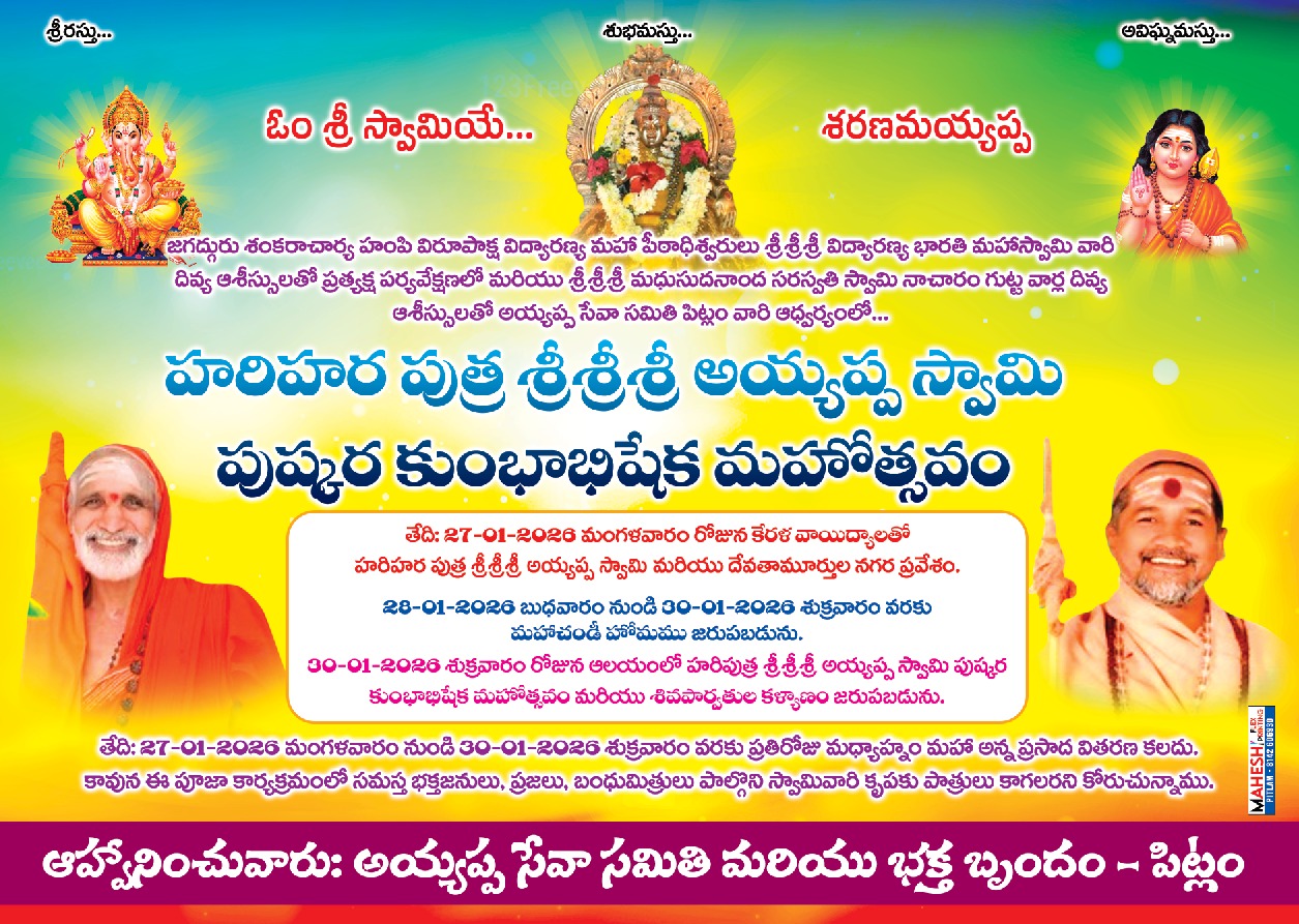 ఆహ్వానించువారు. శ్రీ అయ్యప్ప_ *సేవాసమితి పిట్లం తెలిపారు.