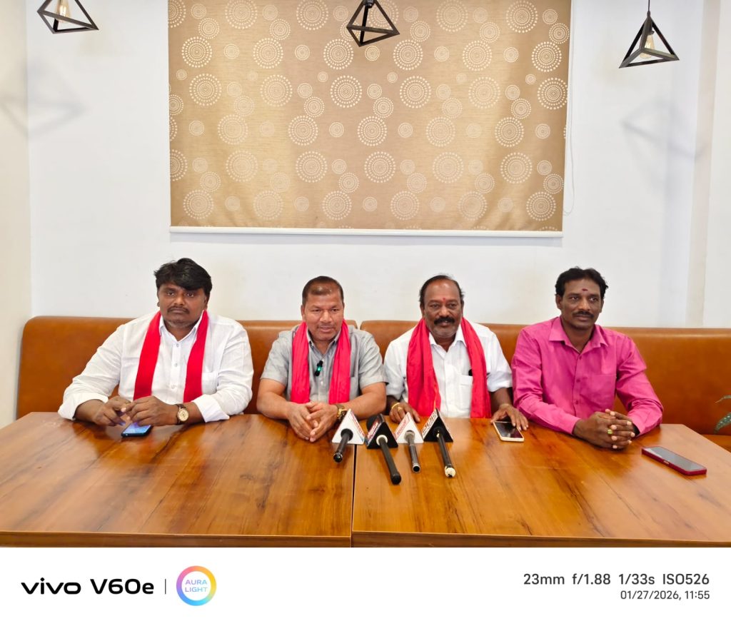 (సాక్షి డిజిటల్ న్యూస్ బి ప్రభాకర్శంషాబాద్, జనవరి 28): కేంద్ర ప్రభుత్వం అనుసరిస్తున్న కార్మిక వ్యతిరేక విధానాలను నిరసిస్తూ, నాలుగు లేబర్ కోడ్‌లను రద్దు చేయాలని డిమాండ్ చేస్తూ ఫిబ్రవరి 12న నిర్వహించ తలపెట్టిన దేశవ్యాప్త సార్వత్రిక సమ్మెను విజయవంతం చేయాలని ఏఐటీయూసీ (AITUC) జిల్లా ప్రధాన కార్యదర్శి పానుగంటి పర్వతాలు, సీఐటీయూ (CITU) తెలంగాణ రాష్ట్ర కార్యదర్శి జి. కవిత పిలుపునిచ్చారు. మంగళవారం శంషాబాద్ మండల కేంద్రంలోని హోటల్ ఎలైట్‌లో ఏర్పాటు చేసిన విలేకరుల సమావేశంలో వారు మాట్లాడారు. చట్టాల నిర్వీర్యం – కార్పొరేట్లకు కొమ్ముకాస్తుండటంపై ధ్వజం నరేంద్ర మోదీ ప్రభుత్వం అధికారంలోకి వచ్చిన తర్వాత దశాబ్దాల పోరాటాల ద్వారా సాధించుకున్న 44 కార్మిక చట్టాలను రద్దు చేసి, వాటిని కేవలం నాలుగు కోడ్‌లుగా మార్చిందని పర్వతాలు విమర్శించారు. ఈ చర్య ద్వారా కార్మిక హక్కులను నిర్వీర్యం చేస్తూ, కార్పొరేట్ పెట్టుబడిదారులకు దోపిడీ చేసే అవకాశం కల్పిస్తోందని మండిపడ్డారు. దేశంలోని అఖిల భారత కార్మిక సంఘాలన్నీ ఏకతాటిపైకి వచ్చి ఈ సమ్మెకు పిలుపునిచ్చాయని ఆయన తెలిపారు.