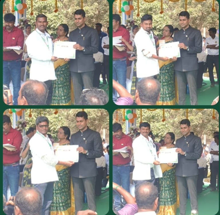 సత్తుపల్లి జనవరి 28 సాక్షి డిజిటల్ (రిపోర్టర్) చెన్నకేశవులు, ఖమ్మం జిల్లా108 అంబులెన్స్ సర్వీస్ లో పనిచేస్తున్న ఉద్యోగులకు ఈరోజు 77వ గణతంత్ర దినోత్సవ వేడుకలు సందర్భంగా ఖమ్మం పోలీస్ పరేడ్ మైదానంలో జిల్లాస్థాయిలో అత్యుత్తమ సేవలు అందించిన సత్తుపల్లి 108 EMT ఎమర్జెన్సీ మెడికల్ టెక్నీషియన్ గొల్లమందల కృష్ణ కు, వేంసూర్ 108 అంబులెన్స్ వాహన చోదకుడు డ్రైవర్ షేక్. అన్వర్ కు, వేంసూర్ 108 అంబులెన్స్ వాహన చోదకుడు డ్రైవర్ కొండ్రు రవి తల్లాడ 108 అంబులెన్స్ EMT ఎమర్జెన్సీ మెడికల్ టెక్నీషియన్ నల్లగట్ల. రామారావు ఖమ్మం జిల్లా కలెక్టర్ అనుదీప్ దురిశెట్టి IAS 108 సర్వీస్ జిల్లా మేనేజర్ అవులూరి దుర్గాప్రసాద్ జిల్లా ప్రోగ్రామ్ మేనేజర్ షేక్ నజీరుద్దిన్ ఉత్తమ సేవా ప్రశంసా పత్రం అవార్డులు అందజేశారు.