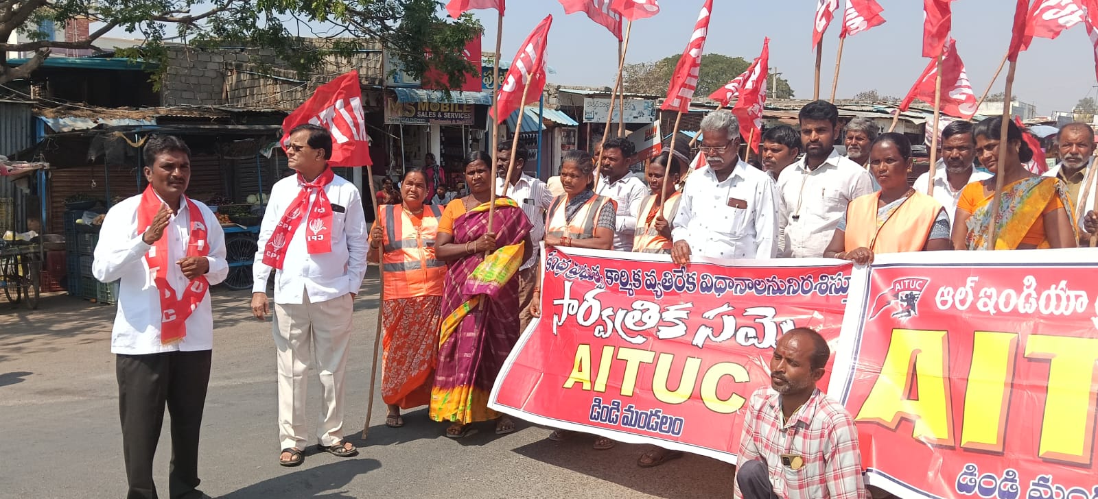 జనం న్యూస్ ఫిబ్రవరి 12 భూపాలపల్లి ( చిట్యాల) ప్రతినిధి శ్రీనివాస్. జయశంకర్ భూపాలపల్లి జిల్లా కేంద్రంలో కేంద్ర ప్రభుత్వం తెచ్చిన నాలుగు లేబర్ కోడ్ లు రద్దు చేయాలని చేపట్టిన దేశ వ్యాప్త సమ్మెలో ఏఐఎఫ్ టు యు రాష్ట్ర నాయకులు చంద్రగిరి శంకర్ మరియు రాష్ట్ర వైస్ ప్రెసిడెంట్ రాయమల్లు పాల్గొని విజయవంతం చేయడం జరిగింది . ఈ సందర్భంగా వారు మాట్లాడుతూ కేంద్రంలో బిజెపి మోడీ ప్రభుత్వం తెచ్చిన నాలుగు లేబర్ కోడులను వెంటనే రద్దు చేయాలని విదేశీ కార్పొరేట్ సంస్థల పెట్టుబడులను అనుమతించడం లాంటి ప్రమాదకర నిర్ణయాలను ఉపసంహరించుకోవాలని డిమాండ్ చేస్తూ కార్మిక ప్రజా రైతు వ్యతిరేక విధానాలను లేబర్ కోడ్ ల ను అమలు చేయమని కేరళ ఢిల్లీ పశ్చిమబెంగాల్ తమిళనాడు వంటి రాష్ట్ర ప్రభుత్వాలు తీర్మానాలు చేసి కేంద్ర ప్రభుత్వానికి పంపించడం జరిగిందని అదే క్రమంలో ఏడవ గ్యారెంటీగా ప్రజాస్వామ్యాన్ని కాపాడుదాం అని హామీలు ఇచ్చి గెలిచిన తెలంగాణ రాష్ట్ర ప్రభుత్వం సింగరేణి కార్మికులకు ఇచ్చిన హామీలను వెంటనే అమలు చేయాలని ఇతర రాష్ట్రాల విధంగా తెలంగాణ రాష్ట్ర ప్రభుత్వం అమలు చేయబోమని అసెంబ్లీలో తీర్మానం చేసి కేంద్ర ప్రభుత్వానికి పంపాలని ఆవేదన వ్యక్తం చేశారు దేశవ్యాప్త సార్వత్రిక సమ్మెలో స్వచ్ఛంగా పాల్గొన్న సంఘటిత అసంఘటిత కార్మిక వర్గాలకు విప్లవ జేజేలు తెలుపుతూ ఇదే స్ఫూర్తితో సింగరేణి పరిరక్షించుకునే విధంగా నాలుగు లేబర్ కోడ్ ల ను రద్దు చేసేంతవరకు 29 కార్మిక చట్టాలను అమలు చేసేవరకు కార్మిక వర్గం ఐక్యంగా ఉద్యమించాలని బిజెపి మోడీ ప్రభుత్వం కార్మిక సంఘాలు కార్మిక చట్టాలు లేని దేశంగా మార్చాలని కార్మికులను నిరాయుధలను చేసి పెట్టుబడిదారులకు పారిశ్రామికవేత్తలకు కార్పొరేట్ సంస్థలకు అనుగుణంగా చట్టాలను మార్పుతో భారత రాజ్యాంగాన్ని అవమానిస్తూ మార్చే విధంగా కొనసాగిస్తూ మనుధర్మ – ఆర్ఎస్ఎస్ భావజాలాలను పెంపొందిస్తూ విరోచితంగా పోరాడి ప్రాణ త్యాగాలతో సాధించుకున్న 29 కార్మిక చట్టాలను రద్దు చేస్తూ కేంద్రంలో మోడీ ప్రభుత్వం కార్మిక వ్యతిరేక లేబర్ కోడ్ ల ను తీసుకొని వస్తుందని కార్మిక చట్టాలను లేబర్ కోడ్ ల ను రద్దు చేసే వరకు పోరాటం చేయాలని సింగరేణి బొగ్గు బ్లాక్ లను సింగరేణికి వేలం లేకుండా ఇవ్వాలని ఓసిపిలను రద్దుచేసి నూతన భూగర్భ గనుల నిర్మాణం చేపట్టాలని సింగరేణిలో వారసత్వ ఉద్యోగాలు కొనసాగించాలని కార్మికులపై పని భారం తగ్గించాలని అపరిస్కృతంగా ఉన్న కార్మికుల సమస్యలు పరిష్కరించాలని పరిష్కారం అయ్యేంతవరకు సంఘటిత అసంఘటిత కార్మిక వర్గం ఐక్యంగా ఉద్యమించాలని ఐక్య ఉద్యమాల ద్వారానే కార్మికుల ప్రజా రైతుల సమస్యలు పరిష్కరించబడతాయని వారు మాట్లాడారు