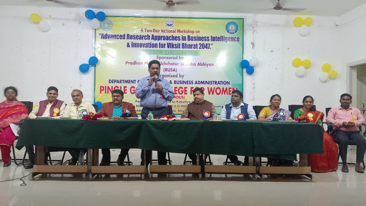 సాక్షి డిజిటల్ న్యూస్, వరంగల్ రిపోర్టర్ జన్ను కోర్నెలు పింగిళి ప్రభుత్వ మహిళా డిగ్రీ పీజీ కళాశాల (స్వయంప్రతిపత్తి), హనుమకొండ లో వాణిజ్య మరియు వ్యాపార పరిపాలన విభాగం ఆధ్వర్యంలో “అడ్వాన్స్డ్ రీసెర్చ్ అప్రోచెస్ ఇన్ బిజినెస్ ఇంటెలిజెన్స్ అండ్ ఇన్నోవేషన్ ఫర్ వికసిత్ భారత్ 2047” కళాశాల ప్రిన్సిపాల్ లెఫ్ట్ నెంట్ ప్రొఫెసర్ బి చంద్రమౌళి అధ్యక్షతన జరిగిన ఈ ముగింపు కార్యక్రమానికి ముఖ్య అతిథిగా విచ్చేసిన హైద్రాబాద్ సెంట్రల్ యూనివర్సిటీ స్కూల్ ఆఫ్ బిజినెస్ మేనేజ్మెంట్ ప్రొఫెసర్ చేతన్ శ్రీవాస్తవ మాట్లాడుతూ యువ పరిశోధకులు డేటా ఆధారిత నిర్ణయ విధానాలను అభ్యసించాలని,