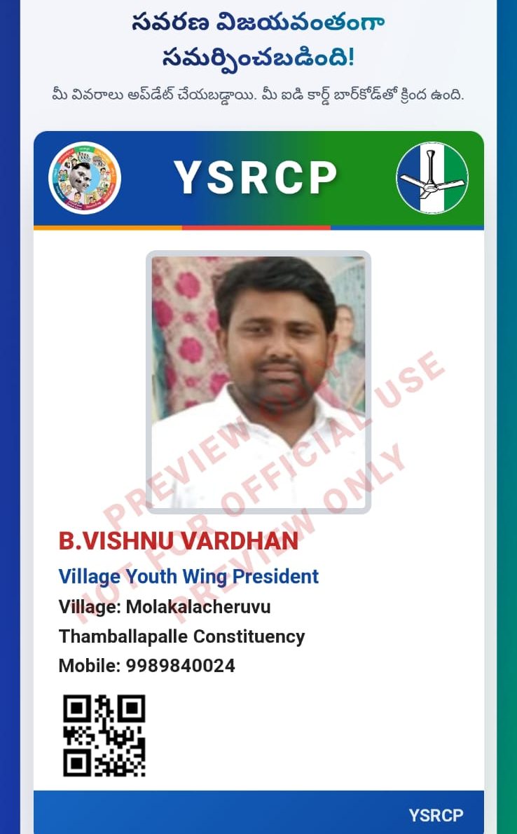 సాక్షి డిజిటల్ న్యూస్ :14 మార్చి 2026 తంబాలపల్లి నియోజకవర్గ ఇన్చార్జి రమేష్ బాబు ( రాము) అన్నమయ్య జిల్లా తంబళ్లపల్లి నియోజకవర్గం మొలకలచెరువు వైసిపి యూత్ వింగ్ అధ్యక్షుడిగా విష్ణువర్ధన్ నియమితులై నారు. ములకలచెరువుకు చెందిన ఖాజా విలేజ్ సోషల్ మీడియా వింగ్ ప్రెసిడెంట్ గా, ములకలచెరువు చెందిన ఇంతియాజ్ మొలకలచెరువు సోషల్ మీడియా వింగ్ ప్రెసిడెంట్ గా, మొలకలచెరువు చెందిన జహీర్ విలేజ్ యూత్ వింగ్ జనరల్ సెక్రటరీగా, విలేజ్ ముస్లిం మైనార్టీ వింగ్ ప్రెసిడెంట్ గా ఆన్సర్ భాషలో నియమితులయ్యారు. ఈ సందర్భంగా వారు మాట్లాడుతూ మాకు ఇచ్చిన ఈ పదవిని అధికారికంగా కాకుండా ఒక బాధ్యతగా తీసుకొని తంబళ్లపల్లి నియోజకవర్గంలో వైయస్సార్ కాంగ్రెస్ పార్టీ బలోపేతానికి కృషి చేస్తామని తెలిపారు. మాకు ఈ బాధ్యతలు అప్పగించిన తంబళ్లపల్లి నియోజకవర్గ వైయస్సార్ కాంగ్రెస్ పార్టీ ఎమ్మెల్యే పెద్దిరెడ్డి ద్వారకానాథ్ రెడ్డికి రుణపడి ఉంటామని అన్నారు. తమకి పదవులు దక్కేందుకు కృషి చేసిన ఎమ్మెల్యేకి కృతజ్ఞతలు తెలియజేశారు.