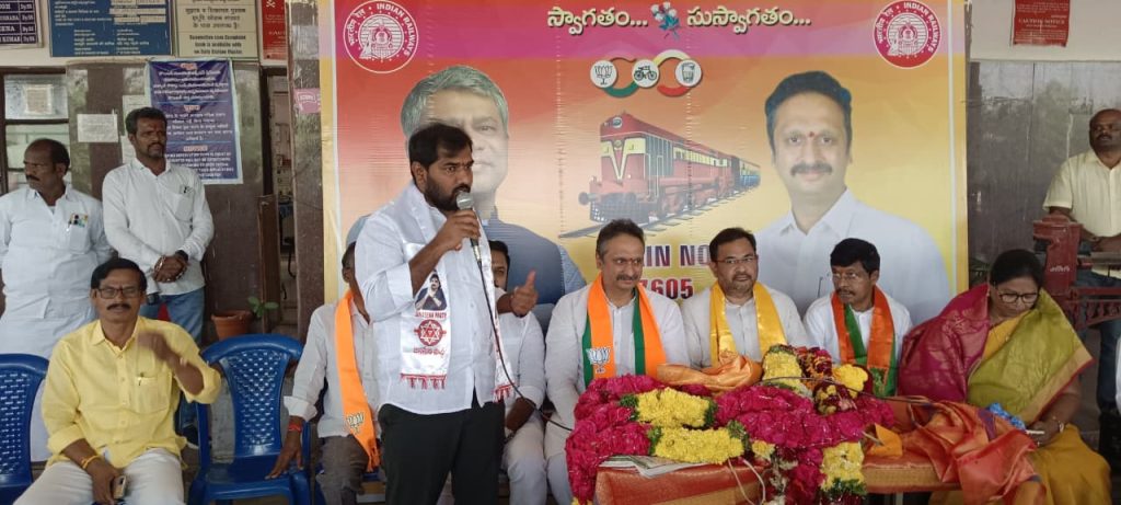 సాక్షి డిజిటల్ న్యూస్ :14 మార్చి 2026 తంబళ్లపల్లి నియోజకవర్గ ఇన్చార్జ్ రమేష్ బాబు ( రాము), ములకల చెరువు రైల్వే స్టేషన్‌లో 07605/07606 తిరుపతి-అకోలా-తిరుపతి వీక్లీ ఎక్స్‌ప్రెస్ రైలు ఆగుతుందని అధికారికంగా గత వారం సౌత్ సెంట్రల్ రైల్వే – ఎస్ సి ఆర్ అధికారులు ప్రకటించారు. అన్నమయ్య జిల్లా తంబళ్లపల్లె నియోజకవర్గం ములకలచెరువు రైల్వే స్టేషన్‌ వద్ద శుక్రవారం ఎన్ డి ఏ కూటమి కుటుంబ సభ్యులు ఎంతో అట్టహాసంగా పండుగలా ఈ ప్రారంభోత్సవం నిర్వహించడం జరిగినది. ఈ కార్యక్రమంలో తంబళ్లపల్లె నియోజకవర్గం జనసేన పార్టీ ఇంచార్జ్ పోతుల సాయినాథ్ పాల్గొన్నారు.. ఈ సౌకర్యాన్ని మనం సద్వినియోగం చేసుకుందాం మరియు మన ప్రాంత అభివృద్ధి కోసం కలిసి పనిచేద్దాం. మా అభ్యర్థనను అంగీకరించినందుకు రైల్వే మంత్రి శ్రీ అశ్విని వైష్ణవ్ కి మరియు సమస్యపై కృషి చేసిన రాజమండ్రి ఎంపీ శ్రీమతి దగ్గుబాటి పురందేశ్వరి కి మా ధన్యవాదాలు తెలపడం జరిగినది. ఈ సందర్భంగా, లోకో పైలట్, అసిస్టెంట్ లోకో పైలట్ మరియు గార్డ్ కు శాలువా తో సన్మానించడం జరిగినది. ఈ కార్యక్రమంలో టీడీపీ జిల్లా అధ్యక్షులు సుగవాసి ప్రసాద్ బాబు , బీజేపీ జిల్లా అధ్యక్షులు సాయి లోకేష్ , రాష్ట్ర పర్యావరణ కార్పొరేషన్ చైర్మన్ దినేష్ రెడ్డి, పౌర సరఫరాల రాష్ట్ర డైరెక్టర్ పర్వీన్ తాజ్, కట్ట దొరస్వామి నాయుడు, బీజేపీ సీనియర్ నాయకులు చర్లపల్లి నరసింహారెడ్డి మరియు కూటమి నాయకులు కార్యకర్తలు ప్రజలు పాల్గొన్నారు.