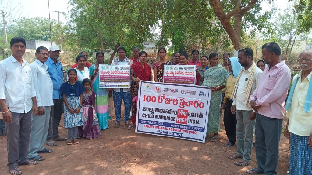 సాక్షి డిజిటల్ న్యూస్ రిపోర్టర్ గాజుల శ్రీనివాస్ గౌడ్ మార్చి 15/03/2026 వెల్గటూర్ మండలం. జగిత్యాల జిల్లా వెల్గటూర్ మండలం చెగ్యామా గ్రామపంచాయతీ ఆవరణంలో మహిళాభివృద్ధి శిశు సంక్షేమ శాఖ ఆధ్వర్యంలో బాల్య వివాహాలపై అవగాహన కార్యక్రమం నిర్వహించడం జరిగింది. చైల్డ్ హెల్ప్ లైన్ జిల్లా కోఆర్డినేటర్ గ్రామ ప్రజలకు మరియు గ్రామ పెద్దలకి బాలవివాహంపై అవగాహన కల్పించడం జరిగింది.బాల్య వివాహాల నిరోధక చట్టం- 2006 ప్రకారం 18 సంవత్సరాల లోపు అమ్మాయికి 21 సంవత్సరంలోపు అబ్బాయికి వివాహం చేయడం చట్టరీత్యా నేరమని అందుకు రెండు సంవత్సరాల జైలు శిక్ష మరియు లక్ష రూపాయల వరకు జరిమానా విధించబడునని అదేవిధంగా బాల్యవివాహాల వల్ల పిల్లలకు భవిష్యత్తులో మానసిక శారీరక ఎదుగుదల ఆగిపోతుందని అలాగే ప్రభుత్వం నుంచి ఇచ్చే ప్రోత్సాహాలు కళ్యాణ లక్ష్మి,షాదీ ముబారక్ వంటి పథకాలు వర్తించవని, అలాగే 18 సంవత్సరాల లోపు బాలబాలికలకి రక్షణ మరియు సంరక్షణ అవసరమైన పిల్లల కొరకు 24 గంటలు పనిచేసే ఉచిత అత్యవసర ఫోన్ సేవా సౌకర్యం చైల్డ్ హెల్ప్ లైన్1098 పోలీస్ 100, ఎమర్జెన్సీ రెస్పాన్స్ సపోర్ట్ సిస్టం 112, మహిళల కోసం 181 సౌకర్యాన్ని సద్వినియోగం చేసుకోవాలని కోరారు. బాల్య వివాహాలు లేని భారతదేశ కోసం ప్రతిజ్ఞ చేయించడం జరిగింది.ఈ కార్యక్రమంలో చైల్డ్ హెల్ప్ లైన్ కోఆర్డినేటర్ శ్రావణ్, జస్ట్ రైట్స్ ఫర్ చిల్డ్రన్ సహాయ వెల్ఫేర్ ఆర్గనైజేషన్ కౌన్సిలర్ లత, గ్రామ సర్పంచ్ కుమ్మరి మల్లేశ్వరి ఎల్లయ్య మరియు ఉపసర్పంచ్ రమేష్ వార్డు నంబర్ అనుమళ్ల శ్యామల శ్రీనివాస్ మాజీ ఎంపీటీసీ రంగు తిరుపతి గౌడ్ గ్రామ పెద్దలు, పిల్లల తల్లిదండ్రులు పాల్గొన్నారు.