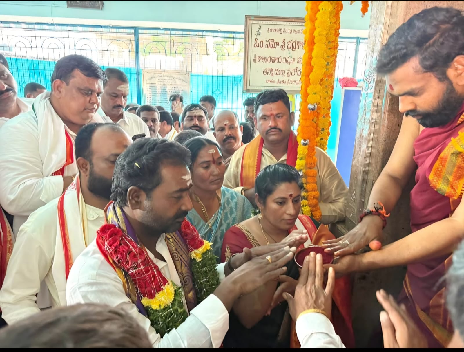 సాక్షి డిజిటల్ న్యూస్ పటాన్చెరు నియోజకవర్గం ప్రతినిధి అరుణ.. గుమ్మడిదల మున్సిపాలిటీ పరిధిలోని బొంతపల్లి గ్రామంలోని శ్రీ భద్రకాళి సమేత వీరభద్ర స్వామి దేవాలయంలో నిర్వహిస్తున్న స్వామివారి నవాహ్నిక బ్రహ్మోత్సవాల్లో భాగంగా కళ్యాణ మహోత్సవం ఘనంగా జరిగింది. ఈ కార్యక్రమానికి పటాన్ చెరు నియోజకవర్గ ఇంఛార్జి కాట శ్రీనివాస్ గౌడ్ , వారి సతీమణి సంగారెడ్డి జిల్లా మహిళా అధ్యక్షురాలు కాట సుధా శ్రీనివాస్ గౌడ్ హాజరై భక్తులతో కలిసి ఆధ్యాత్మిక కార్యక్రమాల్లో పాల్గొని స్వామివారిని దర్శించుకుని ఆశీస్సులు అందుకున్నారు. ఈ సందర్భంగా ఆలయ అర్చకులు వేద మంత్రోచ్ఛారణల మధ్య వారికి ఆశీర్వచనాలు అందించి తీర్థ ప్రసాదాలు అందజేసి ఘనంగా సన్మానించారు. ఈ సందర్భంగా కాట శ్రీనివాస్ గౌడ్ మాట్లాడుతూ, భక్తుల విశ్వాసం, భాగస్వామ్యంతో ఆలయ మహోత్సవాలు ఎంతో వైభవంగా జరుగుతున్నా యని తెలిపారు. స్వామివారి కృపతో ప్రజలందరూ శాంతి, సౌభాగ్యాలు, సంపదలతో అభివృద్ధి చెందాలని ప్రార్థించారు.